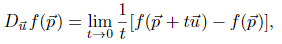, we define the directional derivative of f along ~u (or ~u-directed derivative of f) at ~p by